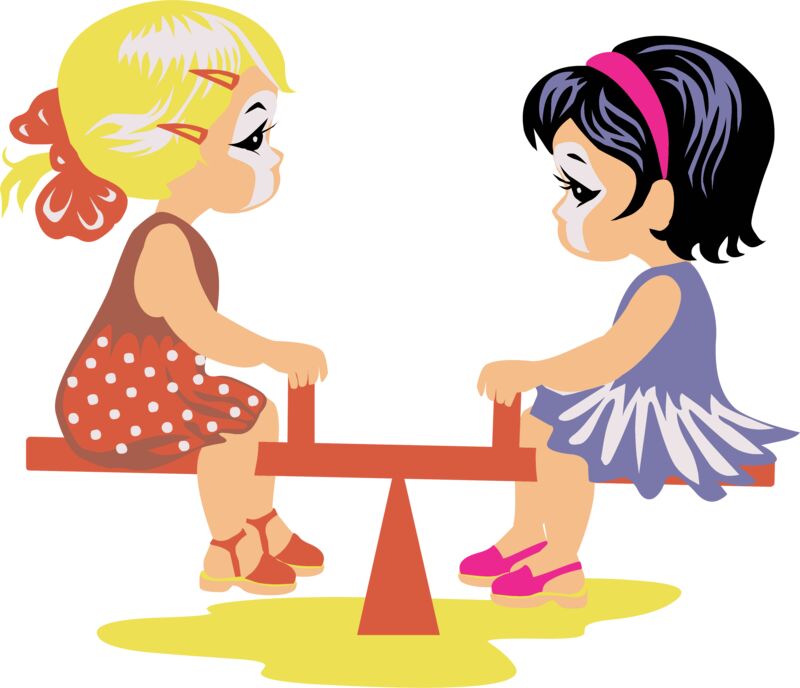 Girls on seesaw